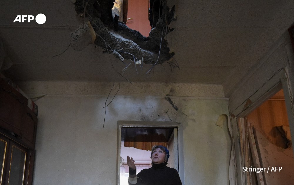 A local resident reacts standing inside her flat damaged by recent shelling in Donetsk, a Russian-controlled city in Ukraine, on November 28, 2023, amid the ongoing Russia-Ukraine conflict.