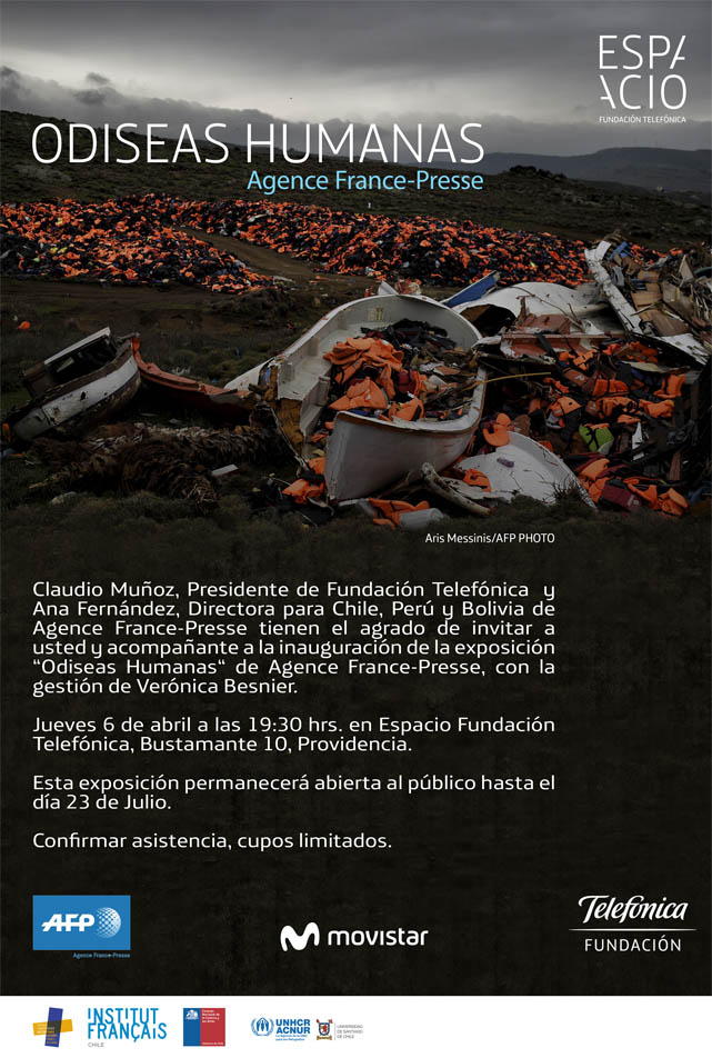 Dans le cadre du Festival Migr'artes, l'Agence France-Presse présente “Odiseas Humanas”, une exposition sur le thème de "La migration", du 7 avril au 23 juillet 2017 à Santiago.
