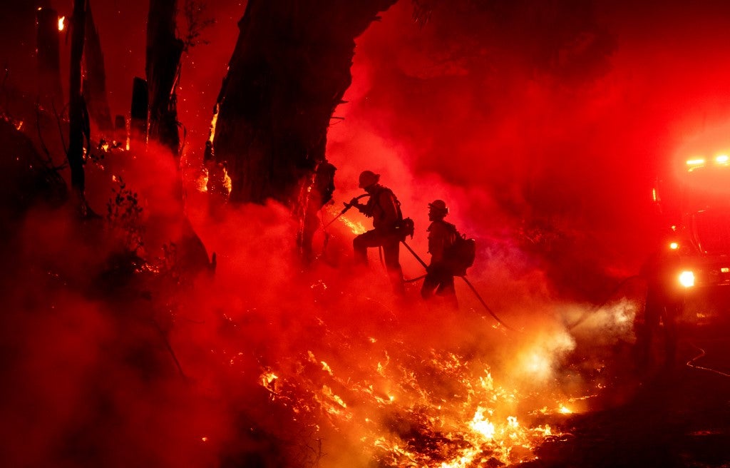 Des pompiers travaillent à contrôler les flammes lors de l'incendie Maria à Santa Paula, Californie, le 1er Novembre 2019. Josh Edelson/AFP