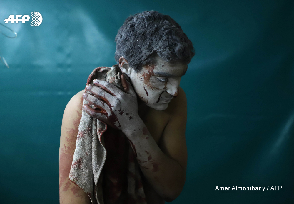 Amer Almohibany est distingué pour son travail réalisé dans la Ghouta orientale, ex-bastion rebelle aux portes de Damas lourdement bombardée par le régime en mars-avril 2018 avant de tomber après cinq ans de siège.