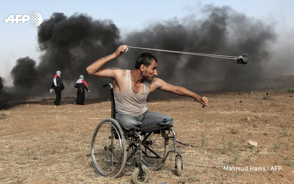Mahmud Hams est récompensé pour une photo d’un militant prise lors des manifestations à Gaza qui mobilisent des milliers de Palestiniens le long de la frontière. Ce même sujet a été récompensé en octobre dernier par le premier prix de la catégorie Photo du Prix Bayeux-Calvados des Correspondants de guerre.