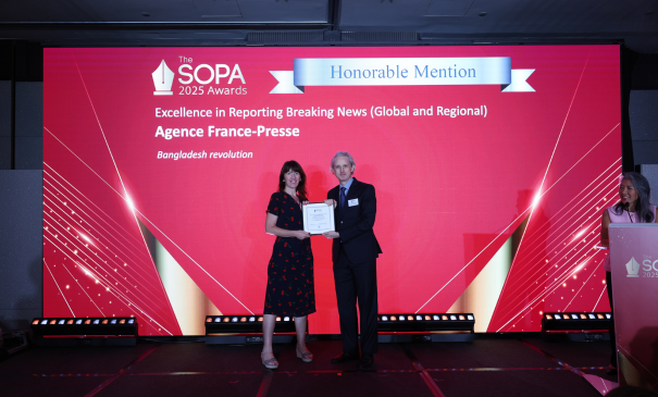 L’AFP a reçu une mention honorable dans la catégorie "Excellence de la couverture de l’actualité" lors des prestigieux SOPA Awards (Society of Publishers in Asia), pour sa couverture de la révolution au Bangladesh.
